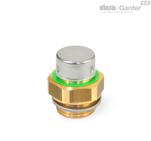 Once the opening pressure given in the table is exceeded, breather valves GN 881 with gasket will vent into a container and so protect against excessive inside container pressure. A green colour ring marks the opening pressure of 200 mbar.