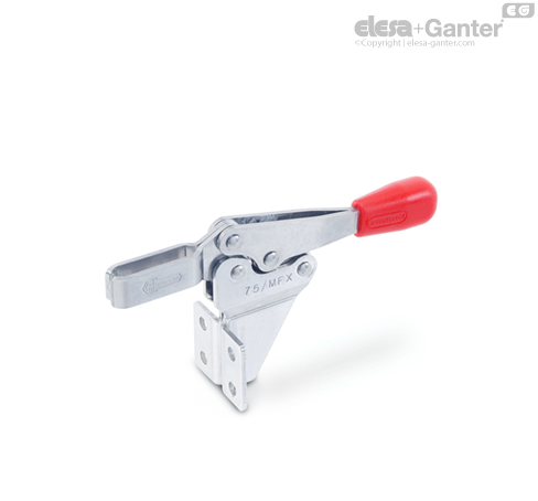GN 820.2 horizontal acting toggle clamps work according to the toggle principle: lever and clamping bar move in the opposite direction.