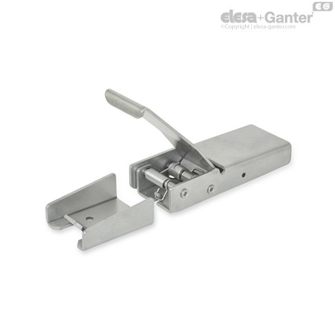 The outstanding features of GN 8330 toggle latches are superior functionality and design. The integrated spring mechanism holds the locking lever and the clamping hook in the open position and allows effortless operation.