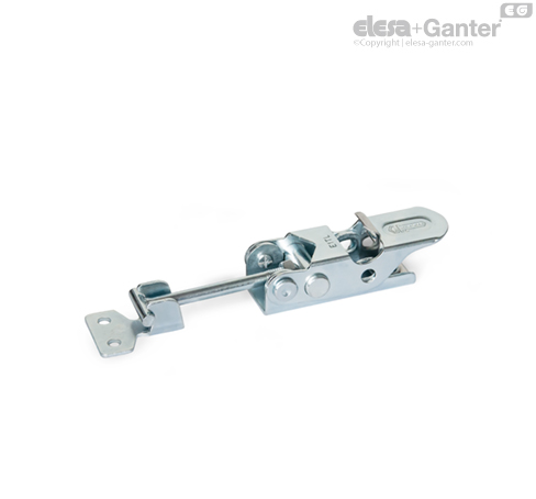 For toggle latches GN 761.1 with lock mechanism, when the lever is closed, a safety hook clicks firmly into the base body. This prevents inadvertent or vibration-induced release from the clamping position. To open the latch, the safety hook can be unlocked with a single hand.