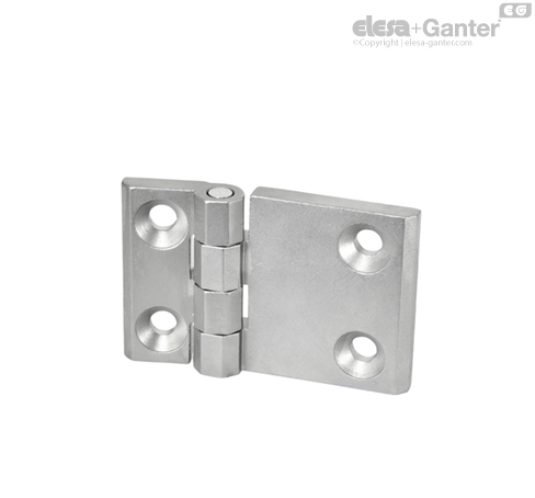 Hinges GN 237 with extended hinge wings are made in a compact and sturdy design. They are used when larger spacings are required for the attachment bore holes.