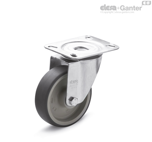 Grey anti-trace thermoplastic wheel, hardness 85 Shore A.