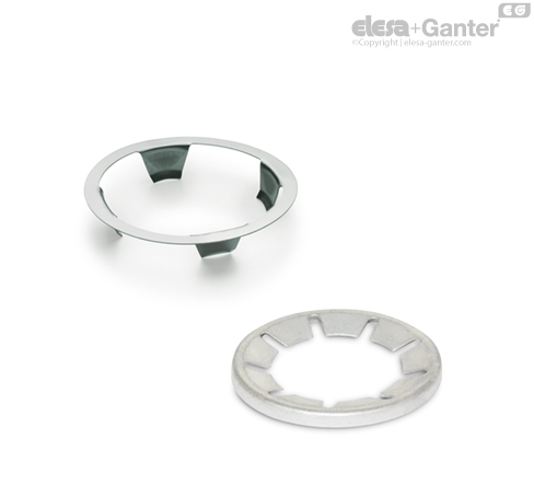 Clamp spring washers GN 509.3, type A allow ball transfers units to be mounted and removed from the installation side.