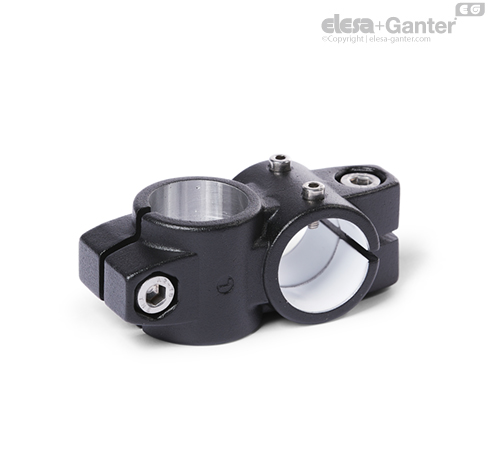 Two-way linear actuator connectors GN 132.1 are based on two-way connector clamps. The additionally provided mounting holes are used to connect to the drive key of a linear actuator. Bores with the designation G are equipped with sleeve bearings.