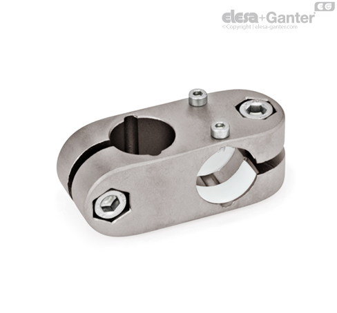 Two-way linear actuator connectors GN 131.1 are based on two-way connector clamps. The additionally provided mounting holes are used to connect to the drive key of a linear actuator. Bores with the designation „G“ are equipped with sleeve bearings.
