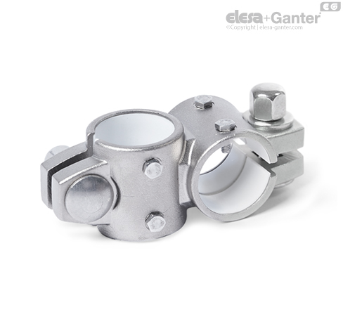 Two-way linear actuator connectors GN 132.25 are based on two-way connector clamps. The additionally provided mounting holes are used to connect to the drive key of a linear actuator. Bores with the designation G are equipped with sleeve bearings.