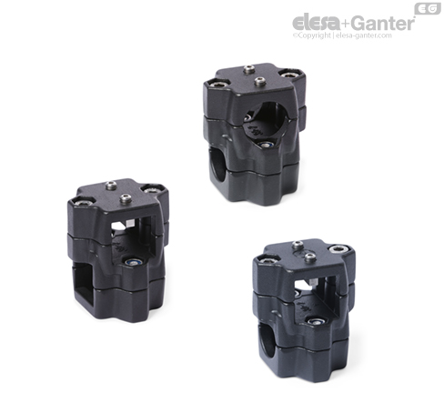 Two-way linear actuator connectors GN 134.1 are based on two-way connector clamps. The additionally provided mounting holes are used to connect to the drive key of a linear actuator.