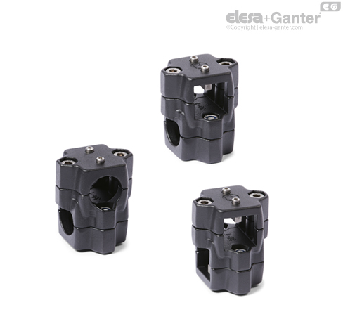 Two-way linear actuator connectors GN 134.2 are based on two-way connector clamps. The additionally provided mounting holes are used to connect to the drive key of a linear actuator.