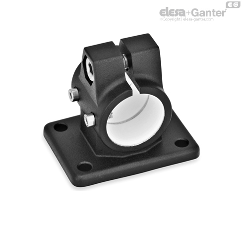 Flanged linear actuator connectors GN 146.1 are based on flanged connector clamps. The additionally provided mounting holes are used to connect to the drive key of a linear actuator. Bores with the designation G are equipped with sleeve bearings.