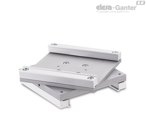 Rotary plates GN 900.5 allow rotation of one of the adjustable slide units at an off-set angle to the other. This possibility offers an additional axis configuration.
