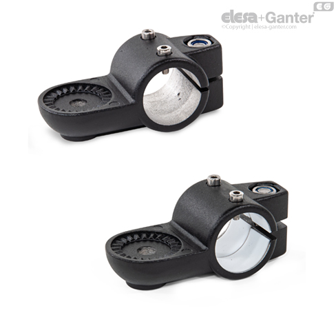 Swivel clamp linear actuator connectors GN 278.1 are based on swivel clamp connectors. The additionally provided mounting holes are used to connect to the drive key of a linear actuator. Bores with the designation G are equipped with sleeve bearings.