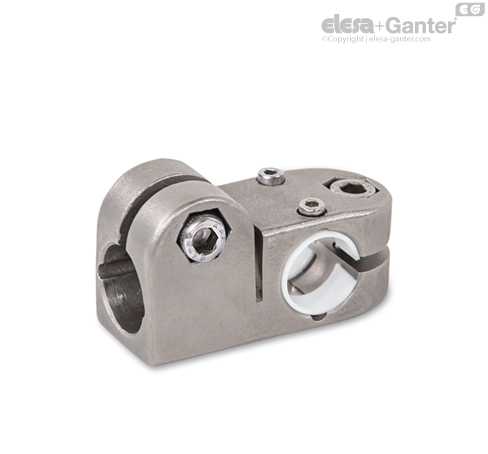 T-angle linear actuator connectors GN 191.1 are based on T-angle connector clamps. The additionally provided fastening holes are used to connect to the drive key of a linear actuator. Bores with the designation „G“ are equipped with sleeve bearings.
