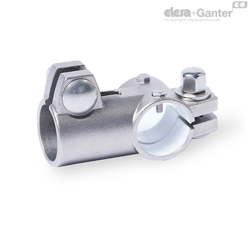 T-angle linear actuator connectors GN 192.15 are based on T-angle connector clamps. The additionally provided mounting holes are used to connect to the drive key of a linear actuator. Bores with the designation G are equipped with sleeve bearings.