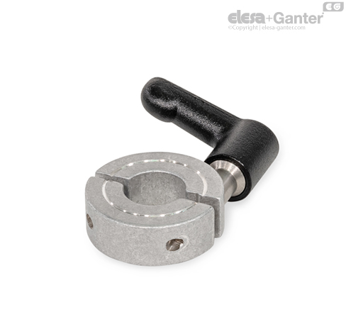 Deljeni nastavni obroči GN 707.4 se uporabljajo, če aksialna montaža ni mogoča. Mogoče jih hitro in enostavno vpenjati brez orodja, tako da se z nastavljivim vpenjalnim vzvodom zmanjša višina reže. Primerni so npr. za uporabo kot omejilnik, katerega položaj se pogosto prestavlja.