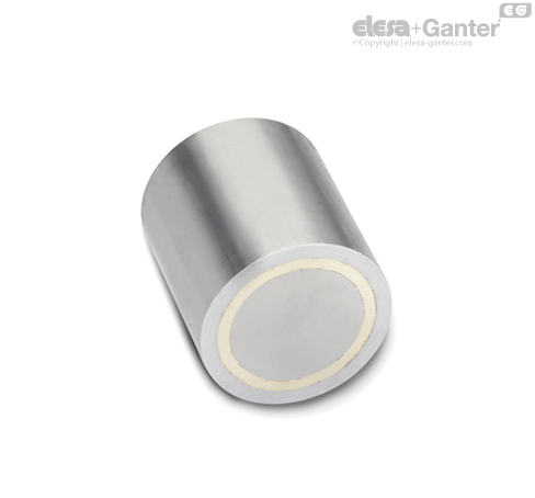 Retaining magnets GN 52.1 are combined with a steel housing and insulation of brass/aluminum or plastic into a system that shields and strengthens the magnet for optimal transmission of the magnetic flux onto the magnetic surface.