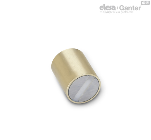 Retaining magnets GN 54.1 are combined with a brass housing, the iron poles and the plastic insulation into a system that shields and considerably strengthens the magnet for optimal transmission of the magnetic flux onto the magnetic surface.
