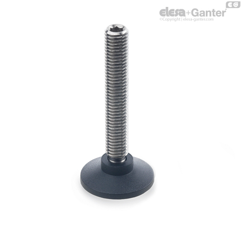 Ball jointed leveling feet GN 638 are used for installing and leveling devices or for pressing and clamping.