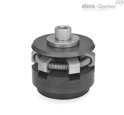 With centering bore clamps GN 411.2 workpieces can be centrally positioned and clamped from the inside of the bore.
