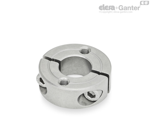 With split shaft collars GN 7072.2, e.g., axles are attached to housing, or wheels and washers are installed on shafts.