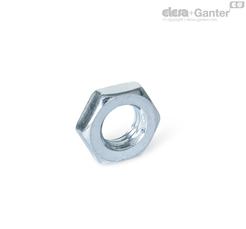 The flat design makes the hexagon nuts ideal for shorter threads. When mounting indexing plungers, they reduce the adjustment range only slightly, which may be of significance especially when using two lock nuts.