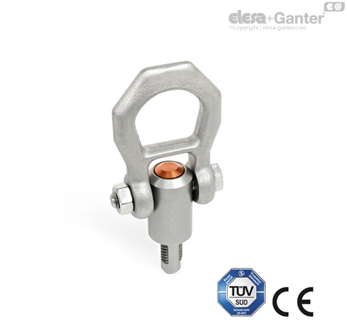 Threaded lifting pins GN 1133 are support elements designed for quick and easy use. Pressing the operation button unlocks the threaded segments, allowing the pin to be moved in or out of the mounting thread. This eliminates the time-consuming process of screwing in or out encountered with typical lifting gear, such as lifting eye bolts.