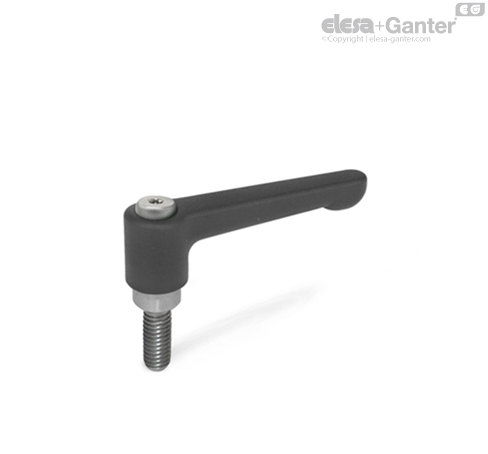 Adjustable hand levers GN 302.1 have a straight lever, not inclined, being parallel to the clamping space.