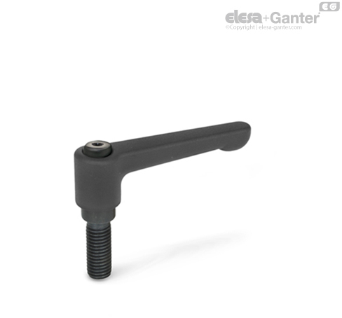 Adjustable hand levers are ideal whenever parts have to be clamped in a confined space or in a particular lever position. The centre insert is connected to the lever via serrations which can easily be disengaged.
