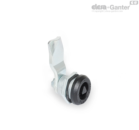 Latches GN 115.9 have a push-to-turn safety function. In the two end positions the spindle is locked in place by the latch. The device can be turned 90° only when the operating element is pressed down, which releases the safety pin from the locked position. This feature protects the latch reliably from moving on its own or as the result of vibrations.