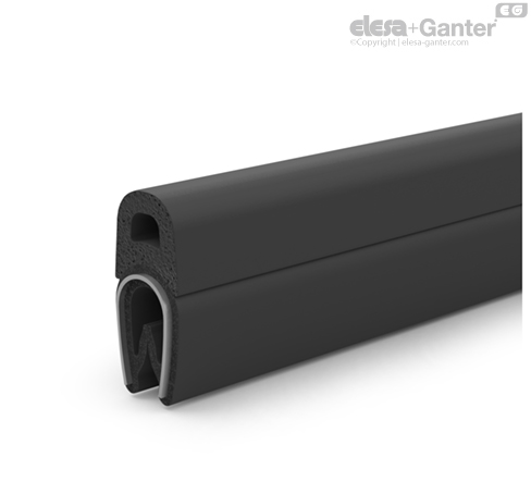 Edge protection seal profiles GN 2182 can be used to seal doors, covers and hatches. The profiles are pressed by hand onto the front of metal sheets and plates. The embedded clamp insert prevents detachment. Glue or other adhesives are not required.