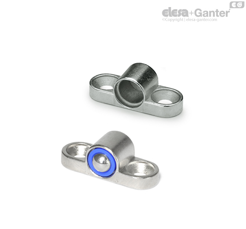Holder for spring plungers / Side thrust pins GN 614.1 are used for arresting and as press-on or press-off elements. The easy attachment using one or two countersunk screws also allows its use where a location borehole with the tolerance field H7 for the spring plunger would not be possible from its size and manufacturability.
