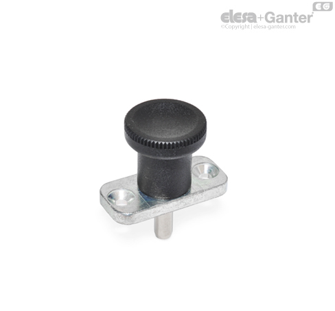 Indexing plungers with Stainless Steel-Plunger GN 608.6 with rest position are used for such applications where the plunger has to stay in its retracted position. To achieve this, the knob is rotated by 90° degrees after being retracted. A notch keeps the plunger in this position.