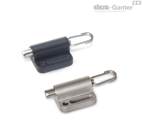 Indexing plungers GN 417 with flange are mounted parallel to the plungers and are characterized by an especially low height. The mounting hole pattern with slots offers generous adjustment options, such as for the use of aluminum sections. The use of washers makes it easier to mount the parts using the slots.