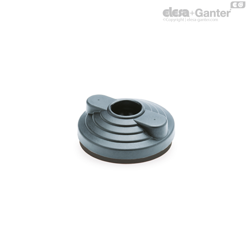 The particular assembling system of the no-slip disk to the base assures a perfect anchoring, preventing separation even in case of impact during transport or of adhesion (sticking) to the floor (see No-slip Disks on page -).