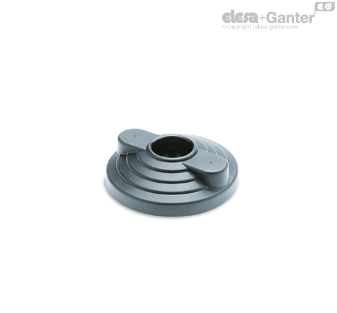 The particular assembling system of the no-slip disk to the base assures a perfect anchoring, preventing separation even in case of impact during transport or of adhesion (sticking) to the floor (see No-slip Disks on page -).