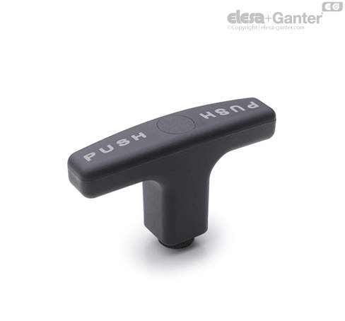 Press the handle to engage the toothing and turn it. By releasing the handle the spring releases the toothing, thus the handle returns to the rest position.