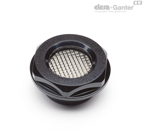 Transparent polyamide based (PA-T/AR) technopolymer. The window consists of a continuous series of prisms which provide a clear and immediate reading of the level of the oil contained in the reservoir.