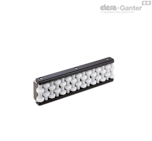 Oblikovani valjčki so še zlasti primerni za vodila steklenih izdelkov, saj v primeru nenamernega razbitja olajšajo izločanje drobcev.