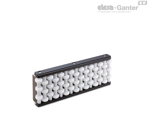 Oblikovani valjčki so še zlasti primerni za vodila steklenih izdelkov, saj v primeru nenamernega razbitja olajšajo izločanje drobcev.