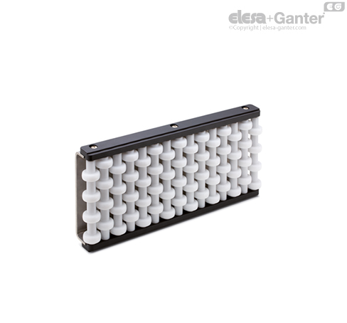 Oblikovani valjčki so še zlasti primerni za vodila steklenih izdelkov, saj v primeru nenamernega razbitja olajšajo izločanje drobcev.