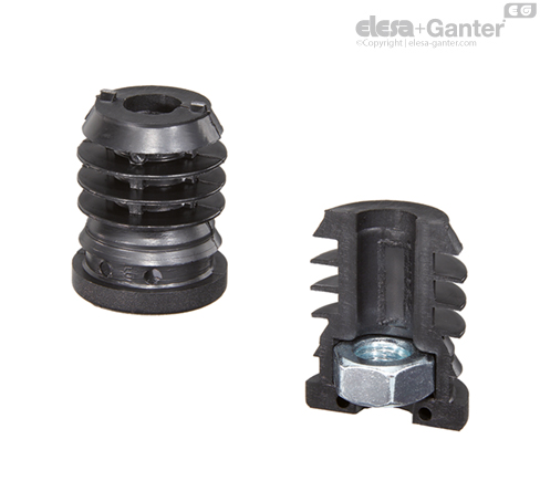 The two end-cap parts are connected together by means of two pins which are housed in special counter-seats. A cavity inside the end-cap is provided for housing an hexagonal nut DIN 934.