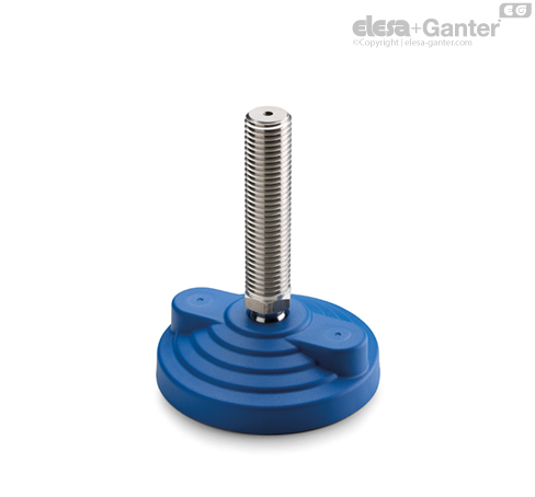 The particular assembling system of the no-slip disk to the base assures a perfect anchoring, preventing separation even in case of impact during transport or of adhesion (sticking) to the floor (see No-slip disk).