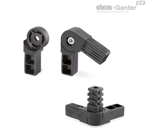 Suitable for creating structures composed by square profiles. The assembly can be performed simply by positioning the connector, forcing it, inside the profile, with no need of screws or other fasteners.