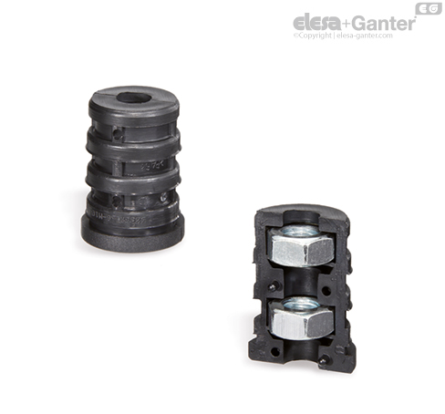 The two end-cap parts have some reference pins which are housed in special counter-seats. Two cavities inside the end-cap are provided for housing two hexagonal nuts DIN 934.