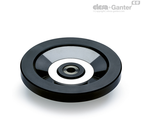 Handlwheels with incorporated balancing counterweights.