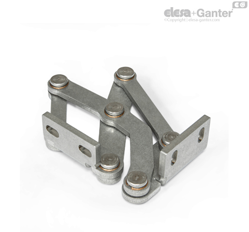Multiple-joint hinges GN 7233 are installed on the inside of flaps, hatches and doors to save space and ensure protection against vandalism. The hinges have a maximum opening angle of 120°, making them perfect for use with medium-thick doors.