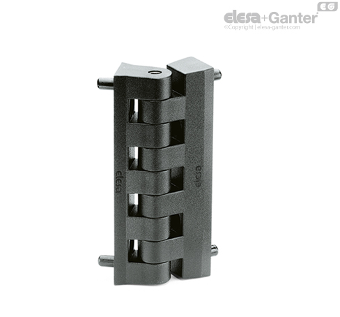 Pass-through holes for M6 countersunk head screws and referring pins for an accurate positioning of the hinge body.