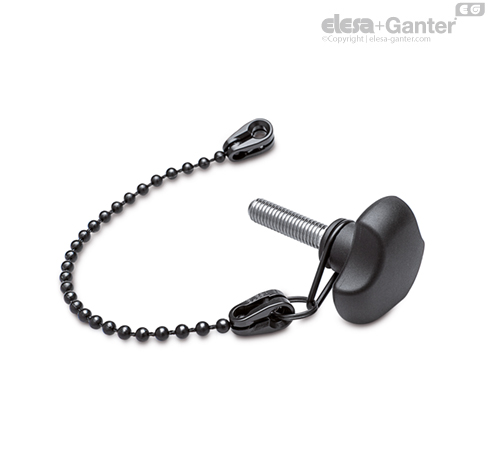 The elastic retaining ring, housed in the groove of the knob can turn freely. The coiled ring connects the elastic retaining ring to the chain.