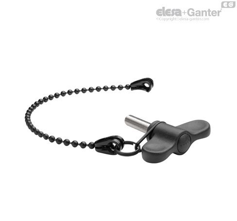 The elastic retaining ring, housed in the groove of the wing nut can turn freely. The coiled ring connects the elastic retaining ring to the chain.