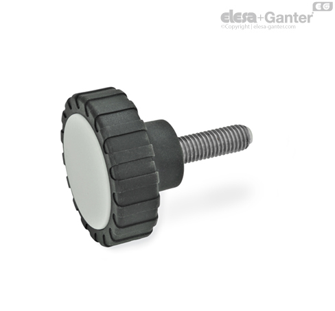 Narebričeni vijaki GN 7336.5, oblika MS/KU s pritisnim čepom iz medenine ali umetne mase se uporabljajo, ko se je treba izogniti pritisnim točkam oziroma poškodbam.
