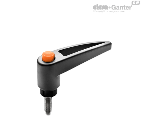 Glass-fibre reinforced technopolymer clamping element with retaining pin, black colour, with knurling on the protruding part to make initial tightening easier. AISI 302 stainless steel return spring.